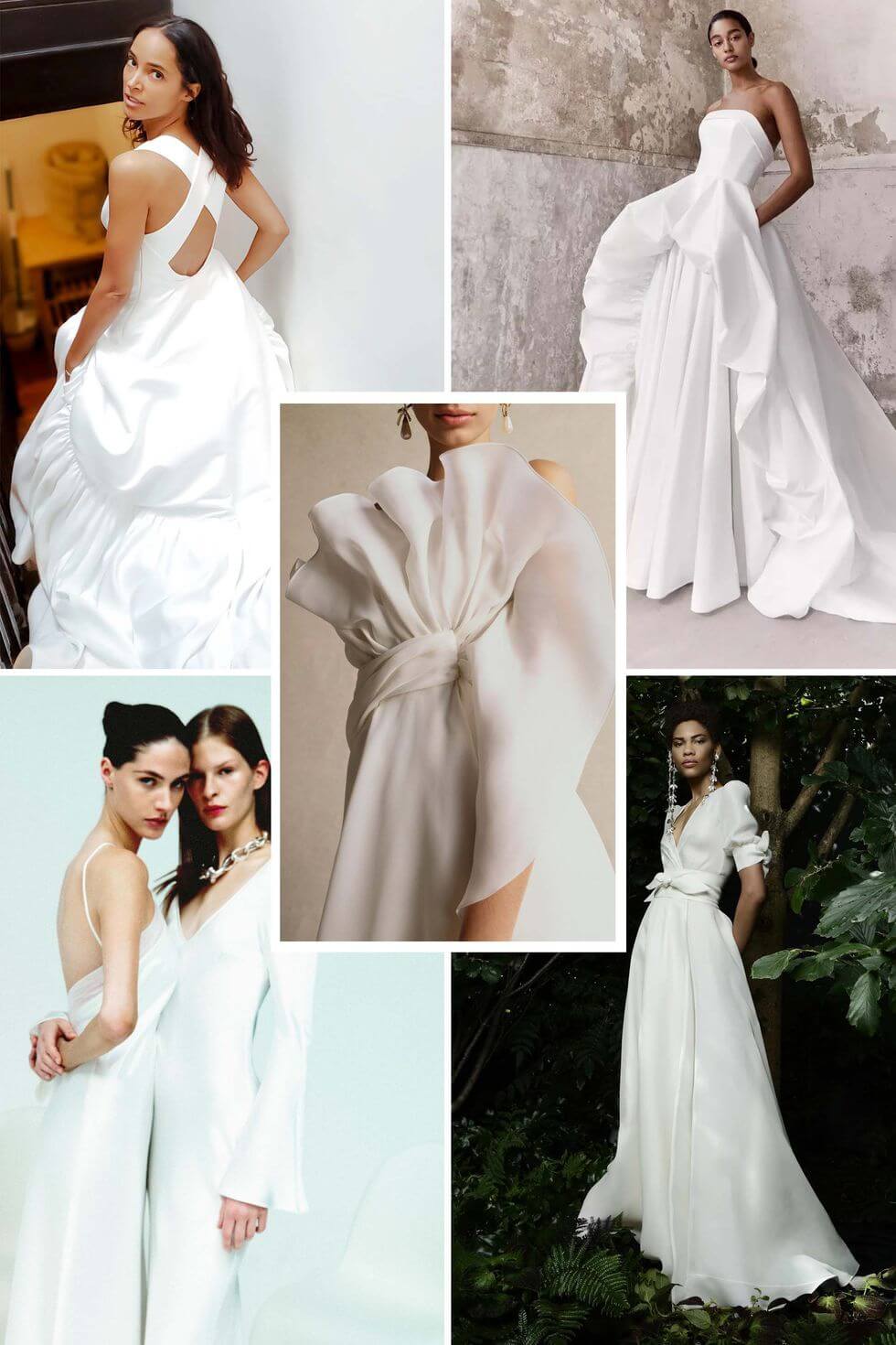 Từ trái qua: Ashi Studio Fall 2021; Khu nghỉ dưỡng Carolina Herrera năm 2021; Kaviar Gauche Bridal năm 2021; Giambattista Valli Thời trang cao cấp mùa thu 2020; Tomo Koizumi Bridal Spring 20